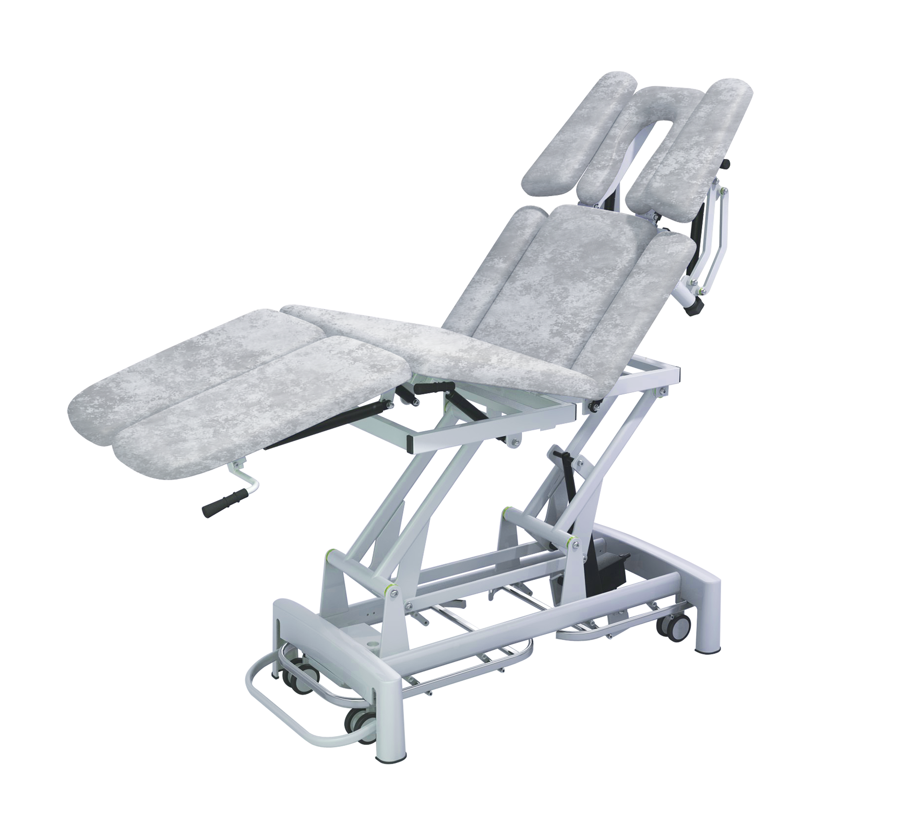 2.本產品裝有氣動彈簧扶手,升降可調,平面旋轉360°方便患者調到一個舒適的體位。