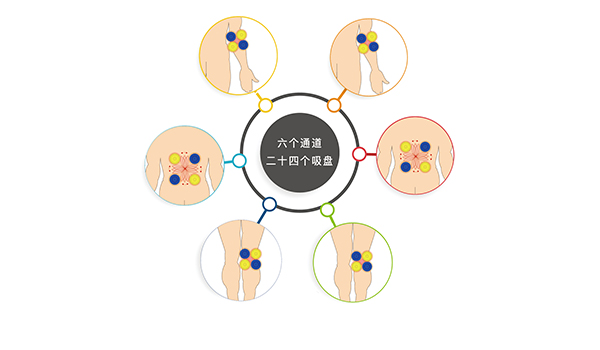 兩組可獨(dú)立調(diào)節(jié)的輸出,每組3個(gè)通道,共有6個(gè)通道,每通道為4個(gè)電極。