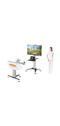 上肢康復(fù)機(jī)器人采用計(jì)算機(jī)虛擬技術(shù),結(jié)合康復(fù)醫(yī)學(xué)理論,實(shí)時(shí)模擬人體上肢運(yùn)動(dòng)規(guī)律,患者可以在計(jì)算機(jī)虛擬環(huán)境中完成多關(guān)節(jié)或單關(guān)節(jié)康復(fù)訓(xùn)練。系統(tǒng)還具有上肢減重性訓(xùn)練、智能反饋、多種維度的空間訓(xùn)練以及強(qiáng)大的評(píng)估系統(tǒng)。主要適用于中風(fēng),腦血管騎形,嚴(yán)重的腦外傷或者其他的神經(jīng)系統(tǒng)疾病造成上肢功能障礙或者手術(shù)后恢復(fù)上肢功能的患者。